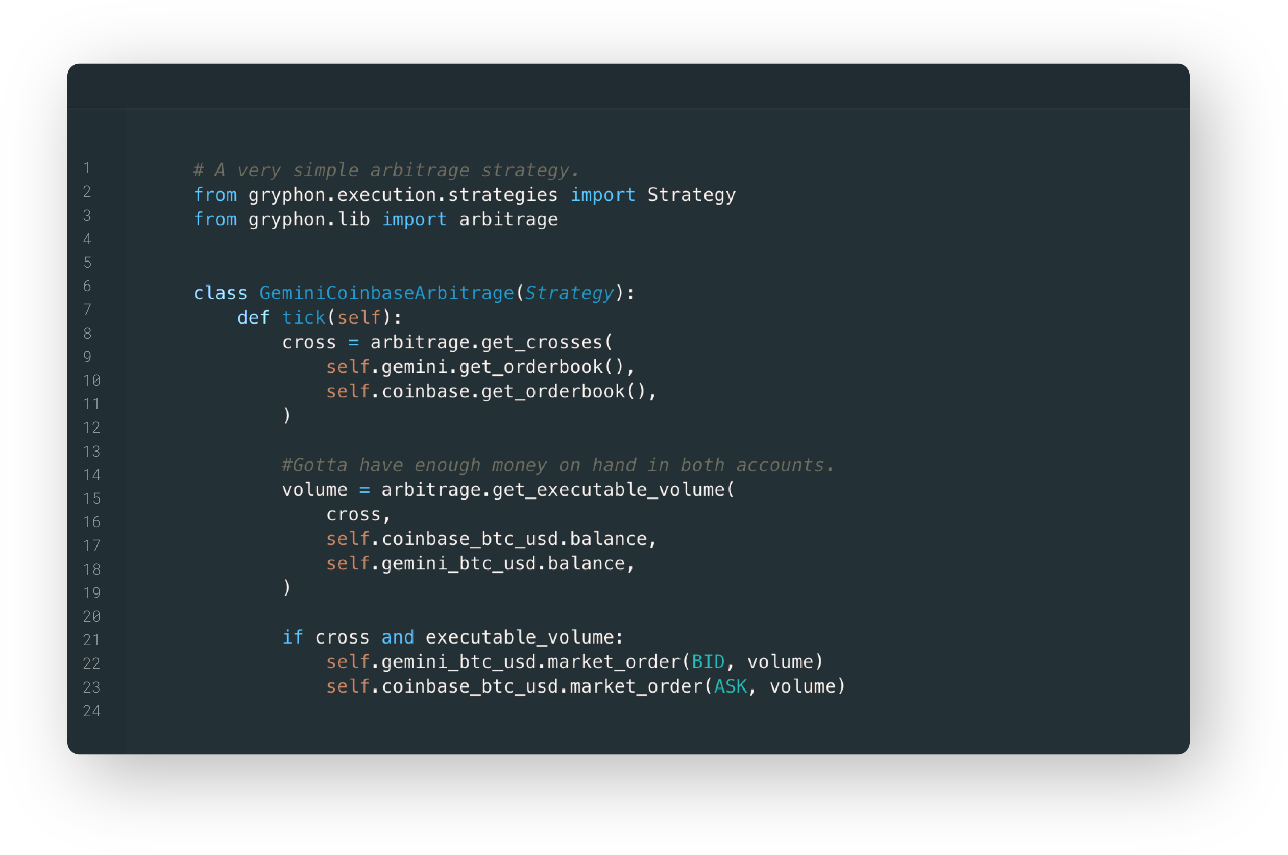 Working with exchanges is hard, and dealing with rate limits, rounding behaviour, nonces, and other details can add thousands of lines of code to a project. Gryphon handles all of this for you, giving the user a single reliable interface for each of 20+ trading pairs, with all the details already solved.