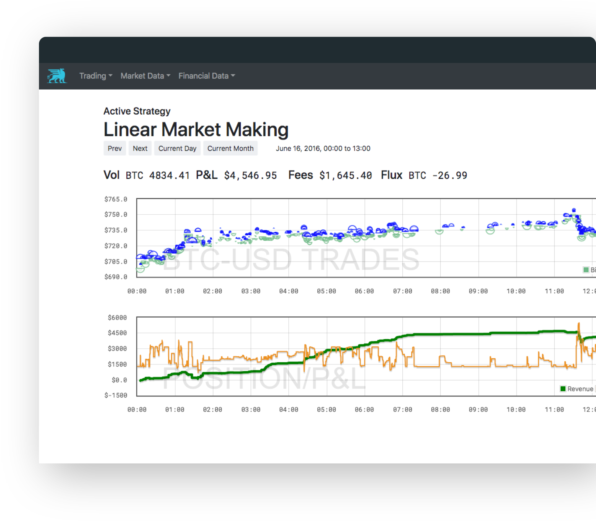High-frequency trading requires ultra-precise trade accounting. Gryphon automatically tracks every order, trade, and transaction that it processes in it's Trading Database, and can achieve $0.01 ledger accuracy over millions of dollars of volume on the best exchanges.